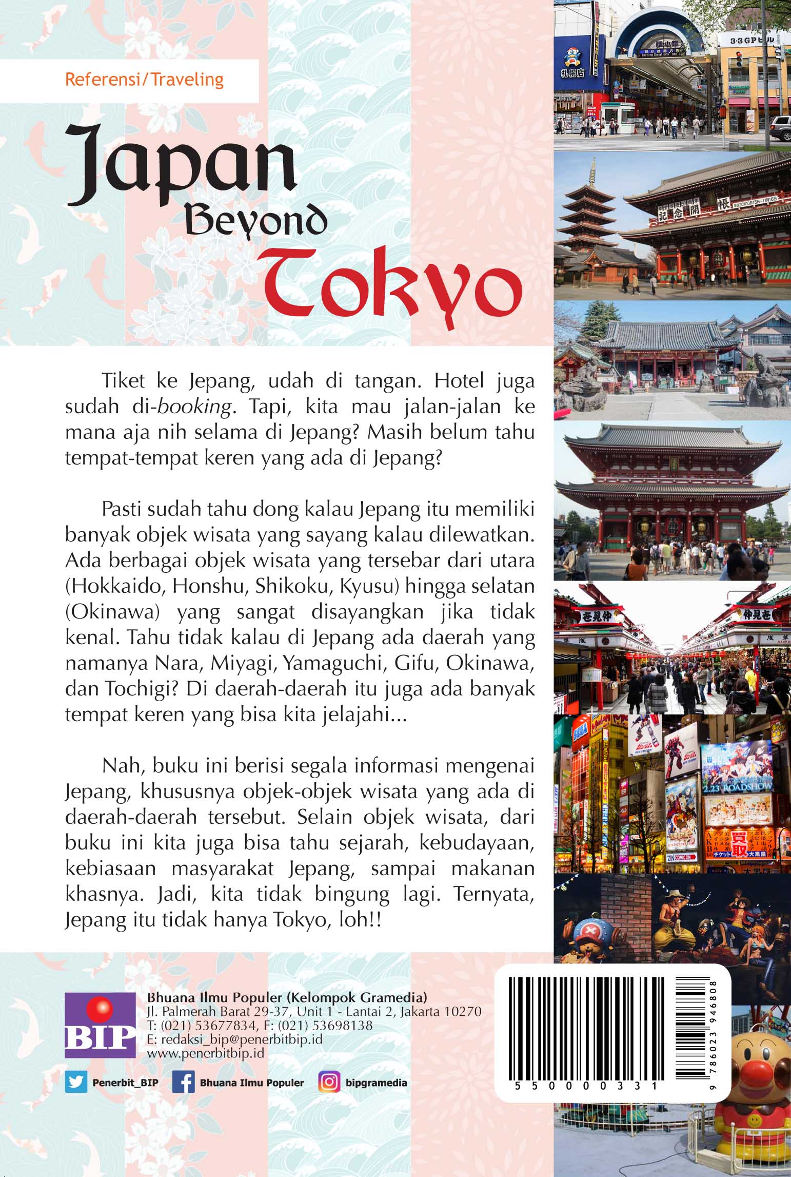 Nah, buku ini berisi segala informasi mengenai Jepang, khususnya objek-objek wisata yang ada di daerah-daerah tersebut. Selain objek wisata, dari buku ini kita juga bisa tahu sejarah, kebudayaan, kebiasaan masyarakat Jepang, sampai makanan khasnya. Jadi, kita tidak bingung lagi. Ternyata, Jepang itu tidak hanya Tokyo, loh!!