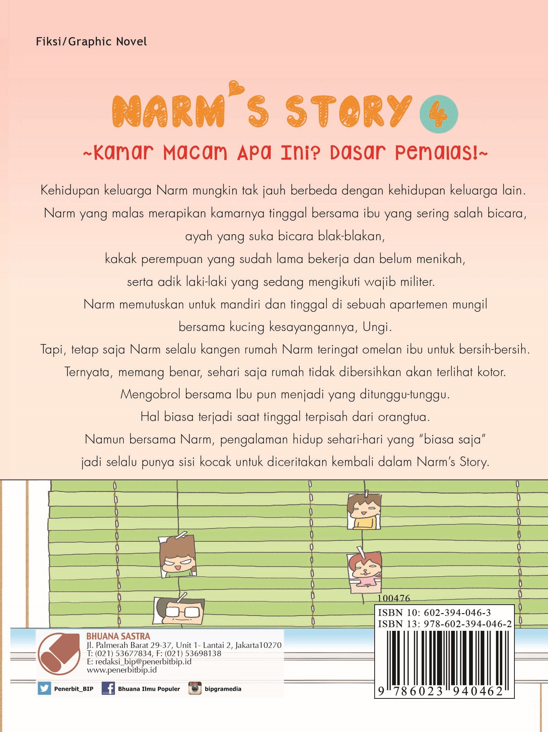 Narm adalah seorang mahasiswi biasa dengan keseharian yang biasa juga. Namun, dia memiliki keluarga yang unik. Ibunya sering sekali salah bicara. Bentuk rambut ibunya yang aneh selalu menjadi bahan ledekan. Tingkah ibunya pun kadang ajaib. Ayahnya seorang pekerja yang giat. Narm mempunyai satu orang kakak perempuan dan seorang adik laki-laki. Di buku keempat ini, Narm masih tetap seperti sebelumnya. Sifat pemalasnya masih belum juga hilang. Namun, Narm sudah mulai mandiri dengan pindah ke sebuah apartemen. Dia tinggal bersama dua kucingnya, Ungi dan Tungi. Tetap saja, Narm selalu kangen rumah, terlebih ibunya. Bersama Narm, kisah kehidupan sehari-hari yang biasa jadi punya sisi kocak untuk diceritakan.