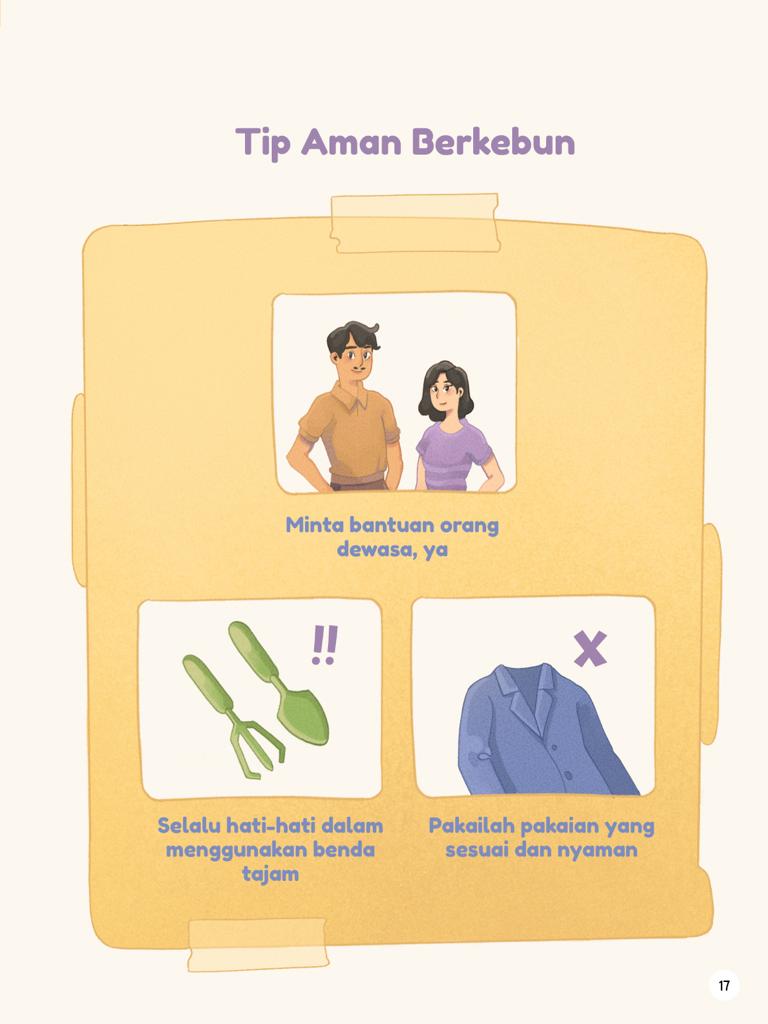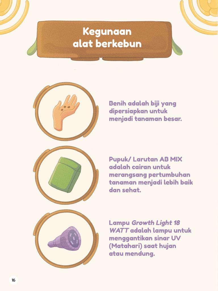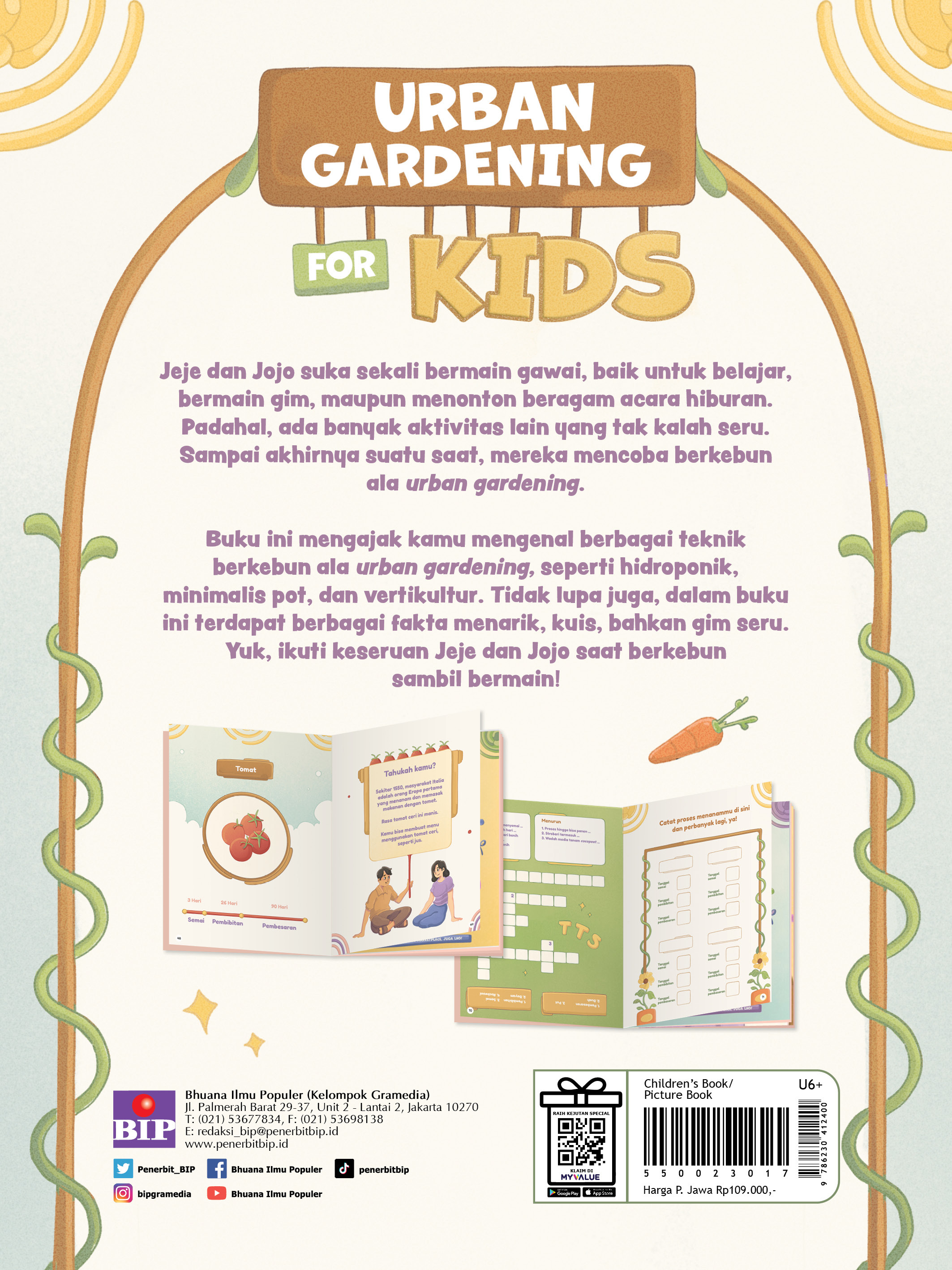 Buku ini mengajak kamu mengenal berbagai teknik berkebun ala urban gardening, seperti hidroponik, minimalis pot, dan vertikultur. Tidak lupa juga, dalam buku ini terdapat berbagai fakta menarik, kuis, bahkan gim seru. Yuk, ikuti keseruan Jeje dan Jojo saat berkebun sambil bermain!