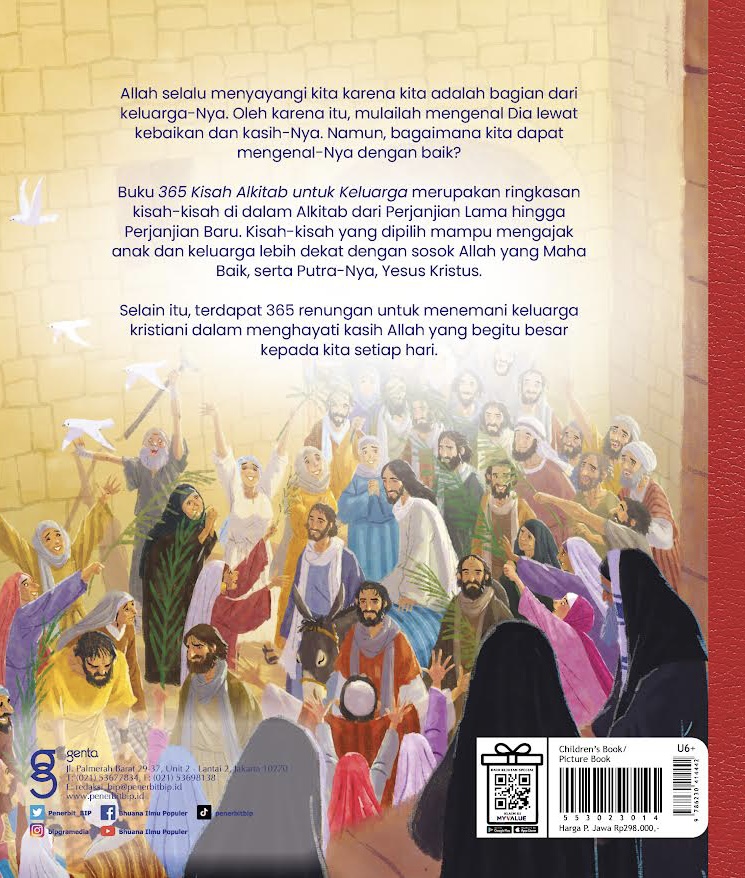 Buku 365 Kisah Alkitab untuk Keluarga merupakan ringkasan kisah-kisah di dalam Alkitab dari Perjanjian Lama hingga Perjanjian Baru. Kisah-kisah yang dipilih mampu mengajak anak dan keluarga lebih dekat dengan sosok Allah yang Maha Baik, serta Putra-Nya, Yesus Kristus.