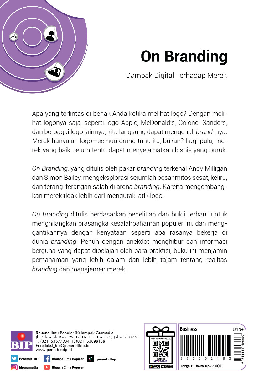 On Branding ditulis berdasarkan penelitian dan bukti terbaru untuk menghilangkan prasangka kesalahpahaman populer ini, dan menggantikannya dengan kenyataan seperti apa rasanya bekerja di dunia branding. Penuh dengan anekdot menghibur dan informasi berguna yang dapat dipelajari oleh para praktisi, buku ini menjamin pemahaman yang lebih dalam dan lebih tajam tentang realitas branding dan manajemen merek.