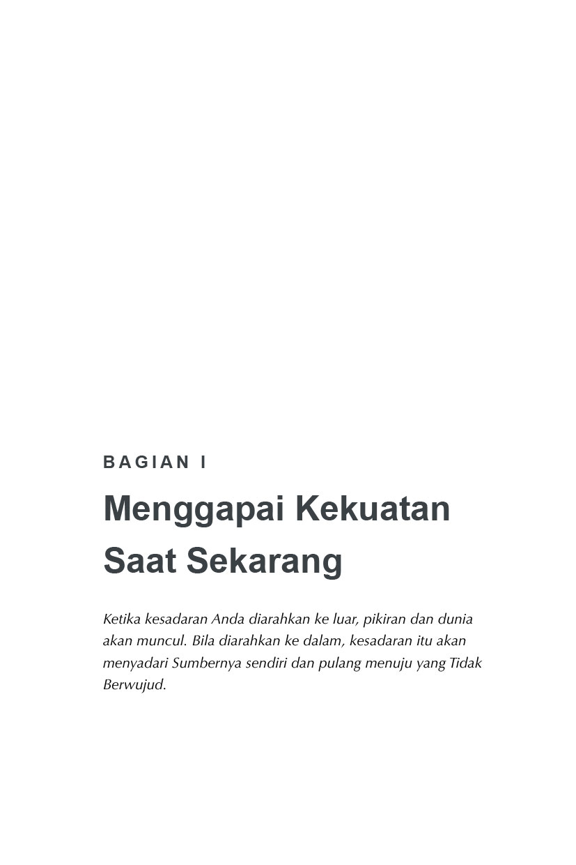 Dalam waktu singkat, The Power of Now terbukti menjadi salah satu buku spiritual terbesar saat ini. Buku ini mengandung kekuatan yang jauh melampaui kata-kata, dan membawa kita ke tempat yang sangat teduh melampaui pikiran, ketika masalah-masalah yang tercipta oleh pikiran kita akan lenyap dan menemukan apa yang dimaksudkan dengan “menciptakan kehidupan yang dibebaskan”.