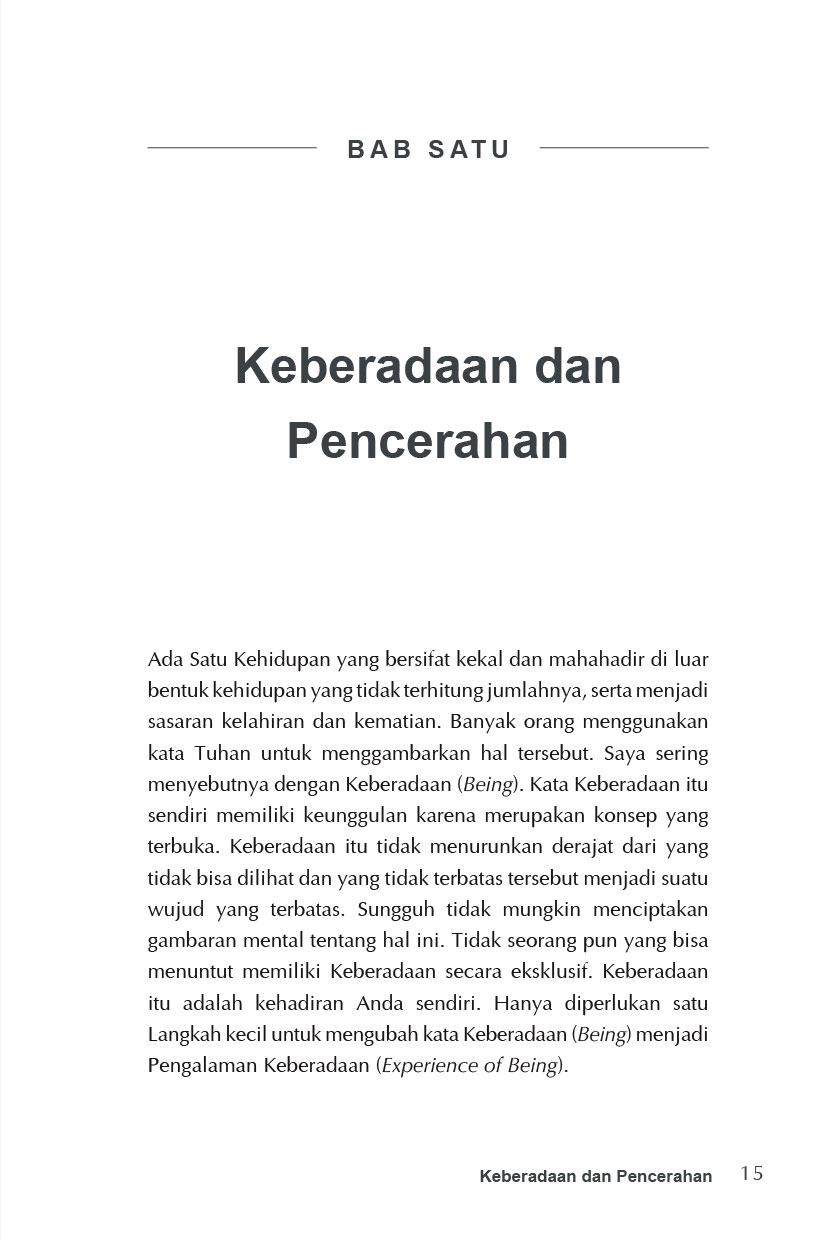 Di dalam buku ini terdapat sejumlah latihan khas dan jawaban jelas untuk menemukan “rahmat, ketenteraman, dan kelegaan” bagi diri sendiri di masa mendatang, sembari meneduhkan pikiran dan melihat dunia di hadapan kita pada saat sekarang.