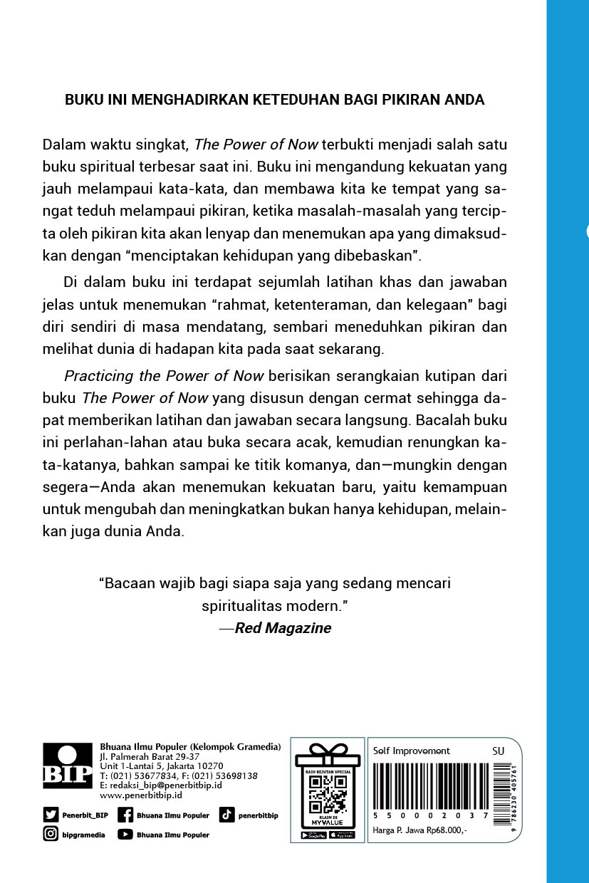 Practicing the Power of Now berisikan serangkaian kutipan dari buku The Power of Now yang disusun dengan cermat sehingga dapat memberikan latihan dan jawaban secara langsung. Bacalah buku ini perlahan-lahan atau buka secara acak, kemudian renungkan kata-katanya, bahkan sampai ke titik komanya, dan—mungkin dengan segera—Anda akan menemukan kekuatan baru, yaitu kemampuan untuk mengubah dan meningkatkan bukan hanya kehidupan, melainkan juga dunia Anda.