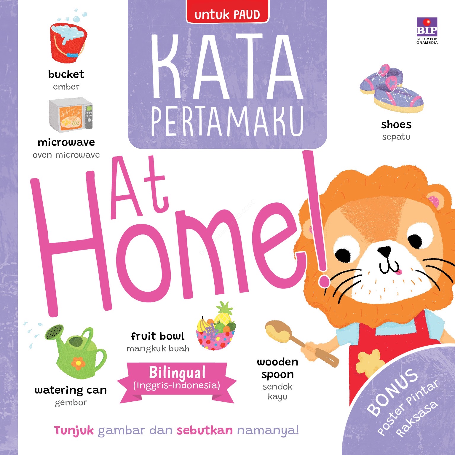 Membacakan buku merupakan aktivitas yang sangat bermanfaat bagi anak. Tidak hanya karena dongeng itu menyenangkan, tetapi membacakan buku juga dapat merangsang tumbuh kembang anak. Ketika anak-anak mendengarkan, saat itu minat bacanya mulai terbentuk. Kemampuan berbahasa mereka juga akan meningkat. Selain itu, mereka juga terlatih untuk berimajinasi dan berpikir kreatif. Buku-buku yang dibacakan juga akan merangsang daya ingat anak. Yang tak kalah penting, kegiatan membacakan buku dapat mempererat relasi antara anak dan orang tua. Buku Kata Pertamaku: At Home! Adalah buku dua bahasa yang bisa Anda bacakan untuk anak Anda. Buku ini memuat kosakata bertemakan benda-benda di rumah dalam bahasa Indonesia dan bahasa Inggris. Buku ini sangat cocok untuk Anda yang ingin memperkenalkan bahasa Inggris untuk anak-anak Anda. Dilengkapi dengan ilustrasi yang lucu dan karakter yang menggemaskan, buku ini akan membuat anak-anak Anda betah belajar.