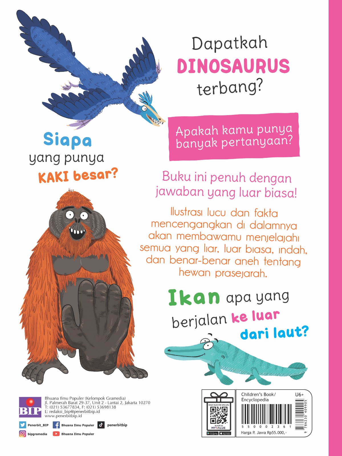 Siapa yang punya kaki besar? Dapatkah Dinosaurus terbang? Ikan apa yang berjalan ke luar dari laut? Apakah kamu punya banyak pertanyaan tentang hewan-hewan yang sebelumnya tidak pernah kamu temui? Maka Buku Tanya Jawab Seru tentang Hewan Prasejarah ini akan sangat cocok untuk kamu! Buku ini dipenuhi dengan jawaban-jawaban luar biasa yang akan menjawab pertanyaan-pertanyaan kamu! Buku Tanya Jawab Seru tentang Hewan Prasejarah ini dilengkapi dengan Ilustrasi yang lucu dan menggemaskan, sehingga kamu tidak akan bosan saat membacanya, Tidak hanya itu, di dalam Buku Tanya Jawab Seru tentang Hewan Prasejarah ini juga terdapat fakta yang mencengangkan yang akan membawa kamu menjelajahi semua yang liar, luar biasa, indah, dan benar-benar aneh tentang hewan prasejarah.