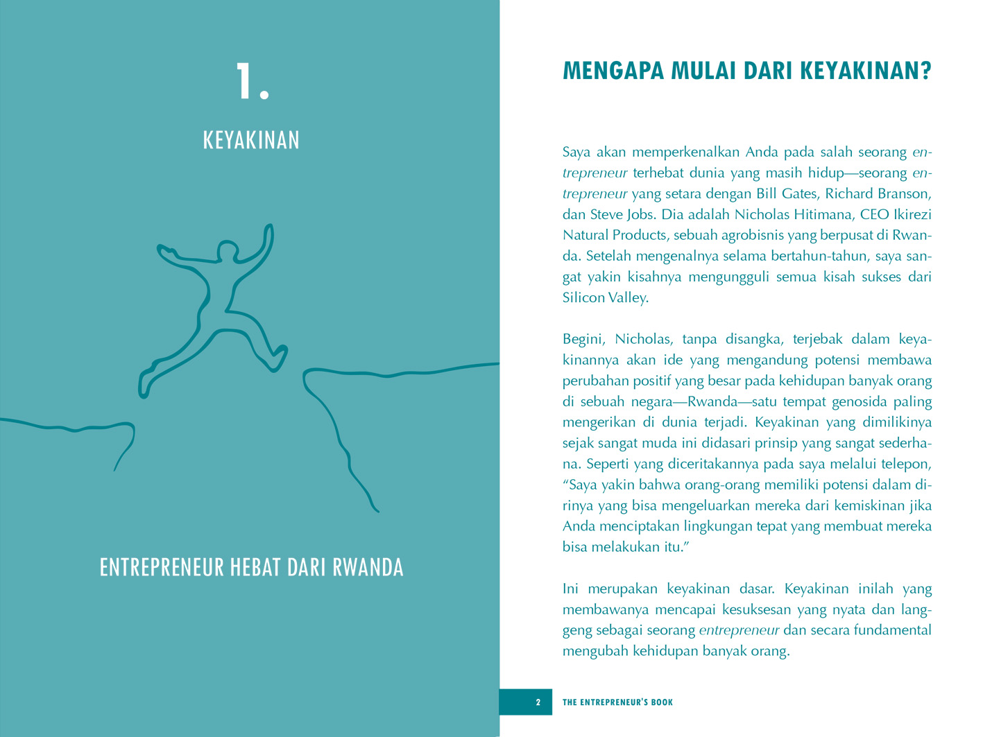 Ini merupakan keyakinan dasar. Keyakinan inilah yang membawanya mencapai kesuksesan yang nyata dan lang- geng sebagai seorang entrepreneur dan secara fundamental mengubah kehidupan banyak orang.