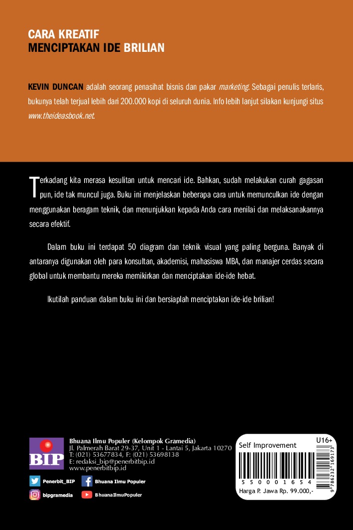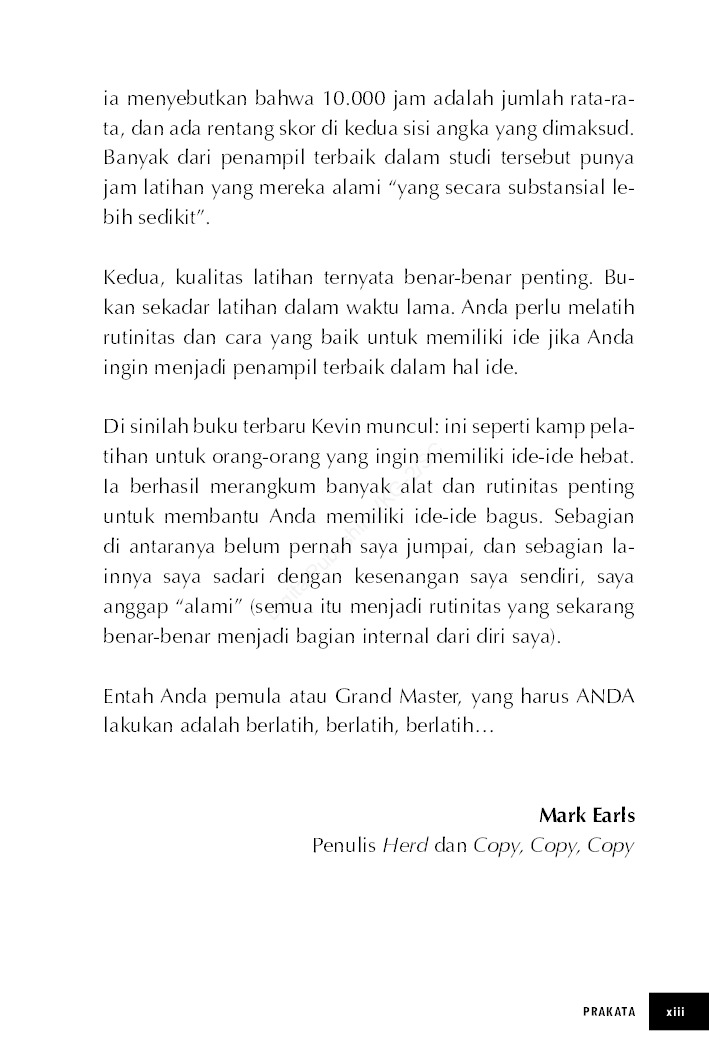 Tak hanya cara menggali ide kreatif, buku ini juga memberikan tips untuk menyampaikan ide tersebut kepada audiens. Buku ini adalah sebuah solusi lengkap untuk Anda para pekerja kreatif dan siapapun yang ingin melatih kreativitasnya.