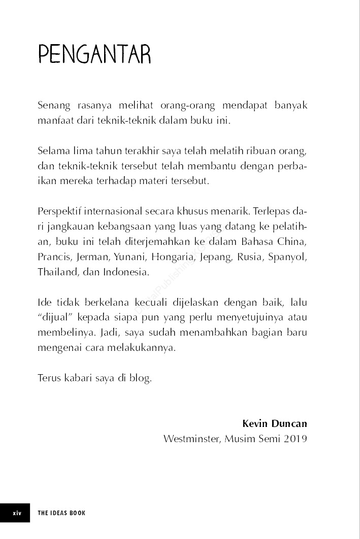 Buku ini menjelaskan bagaimana menghasilkan ide-ide bagus dan bagaimana menjalankan brainstorming yang brilian. Ini adalah tema pelatihan dengan caranya sendiri, dan dikombinasikan dengan Buku Diagram, ia membuat kursus pelatihan yang kuat tentang bagaimana memiliki sudut pandang dan argumen yang persuasif.