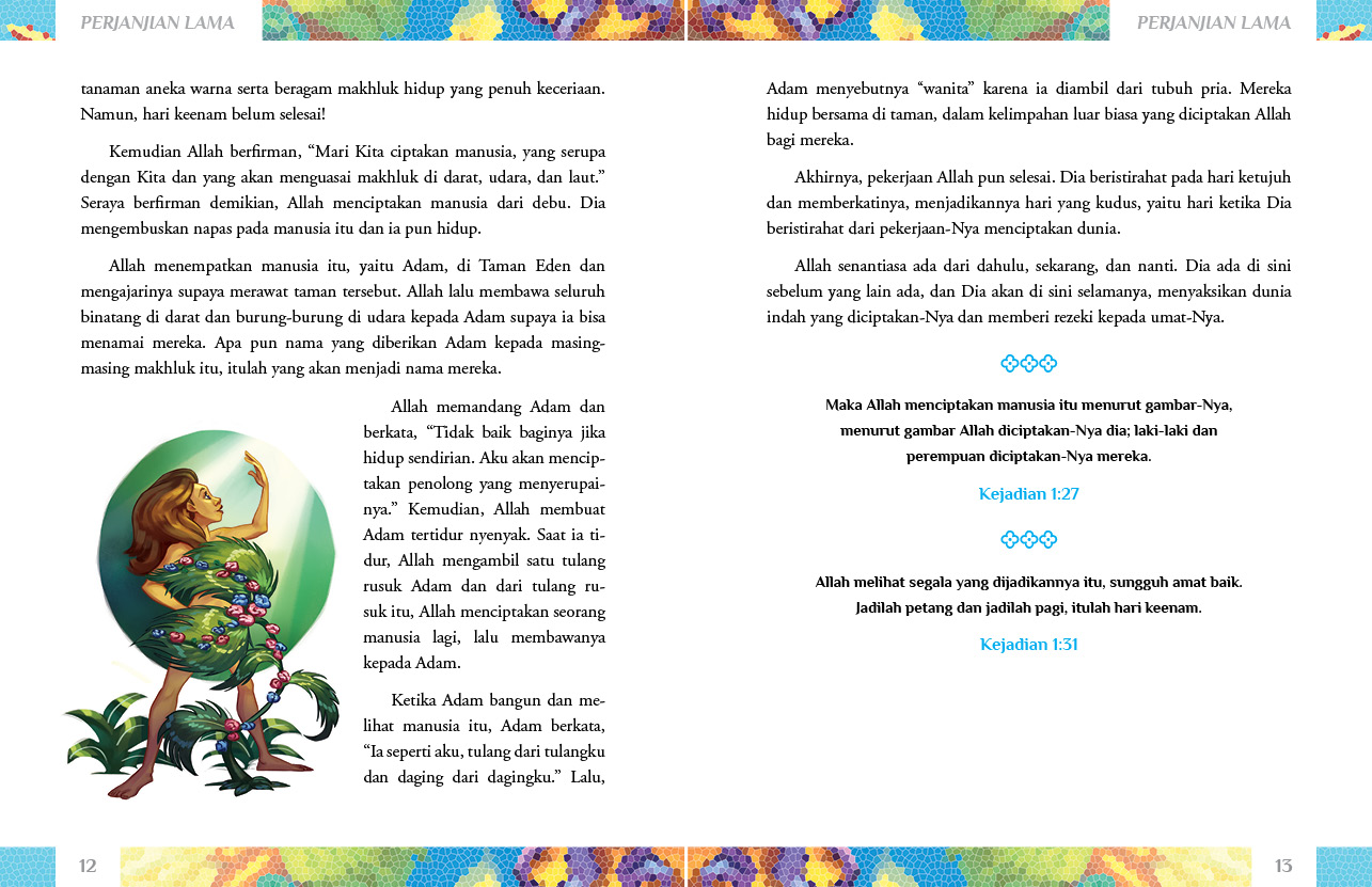 Baca satu cerita Alkitab setiap hari yuk! Sedikit demi sedikit, tahu-tahu tahun depan kita sudah selesai membaca berbagai kisah Alkitab. Mulai dari Penciptaan, Kebangkitan Yesus, bahkan sampai Kehidupan Jemaat Mula-Mula, semuanya ada di buku ini! Jadi, ayo kita baca sama-sama!